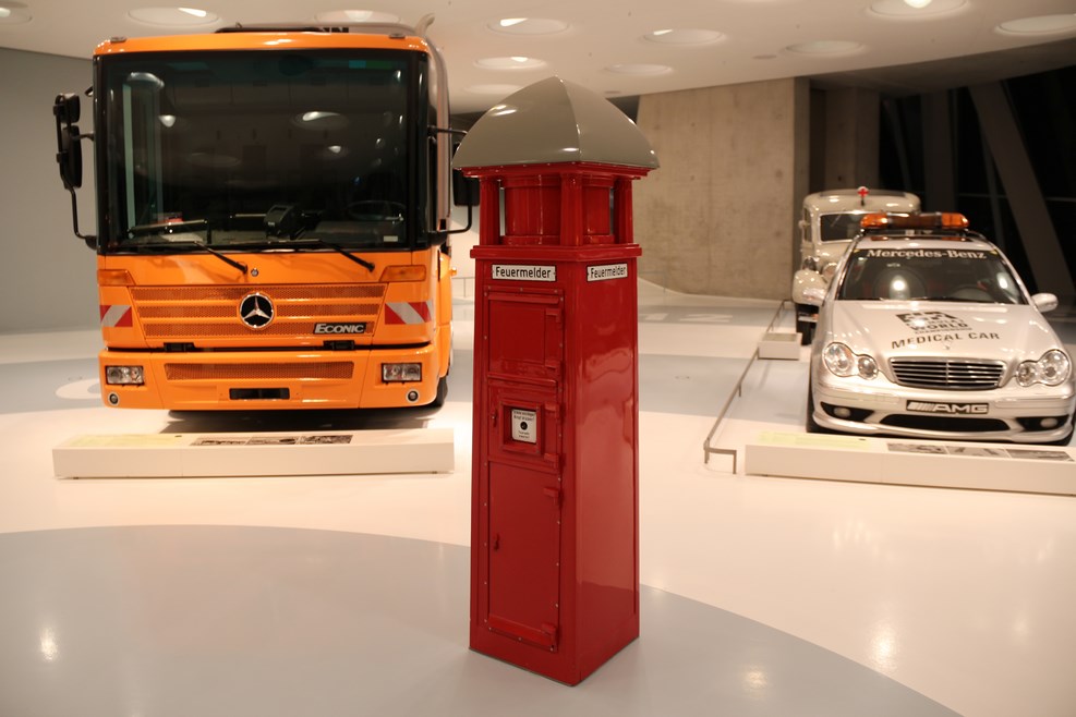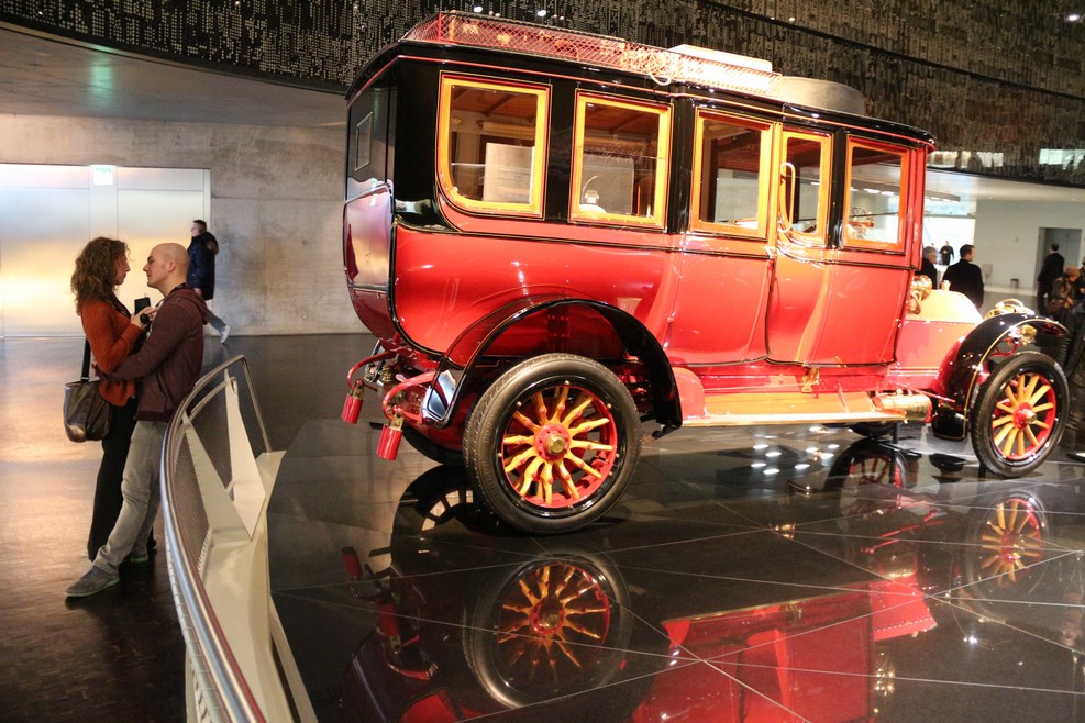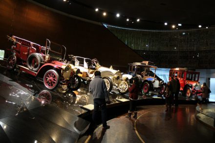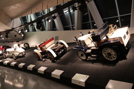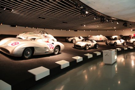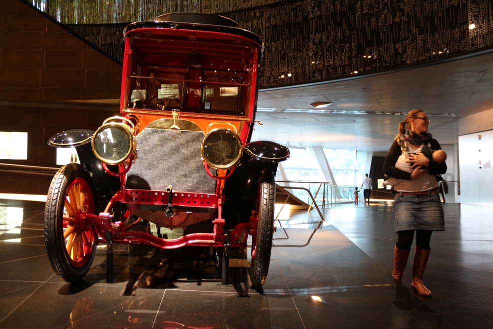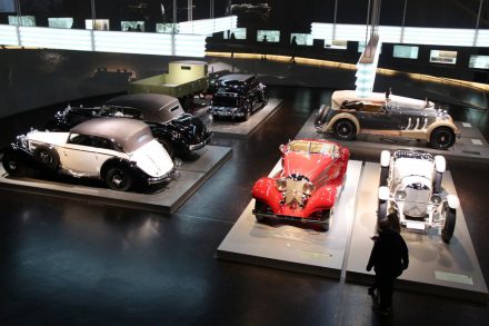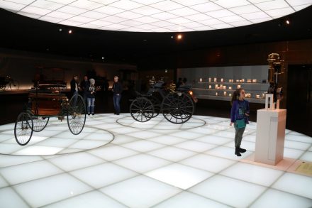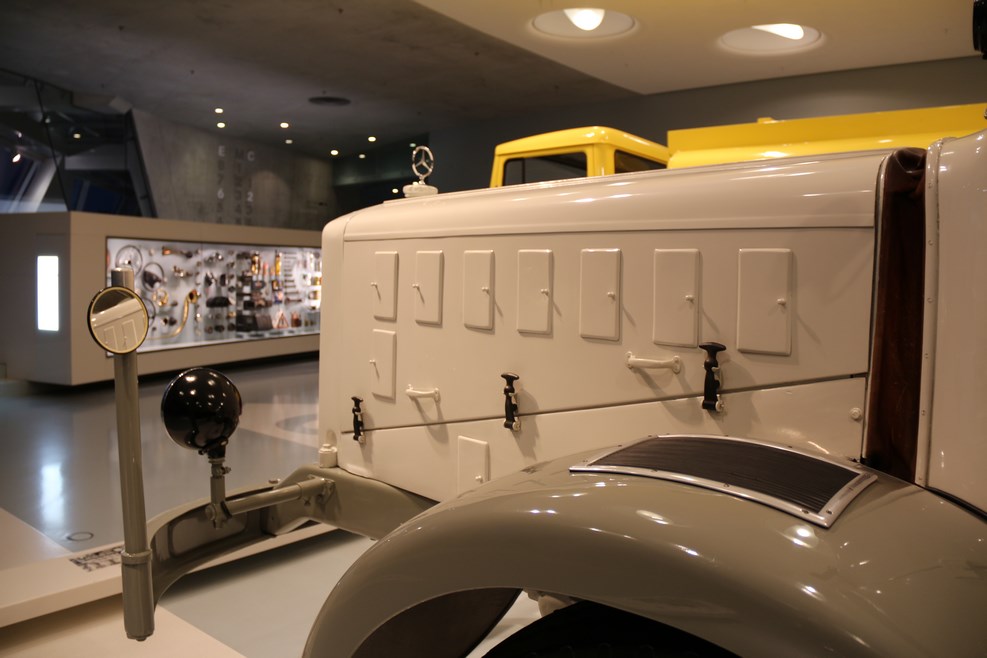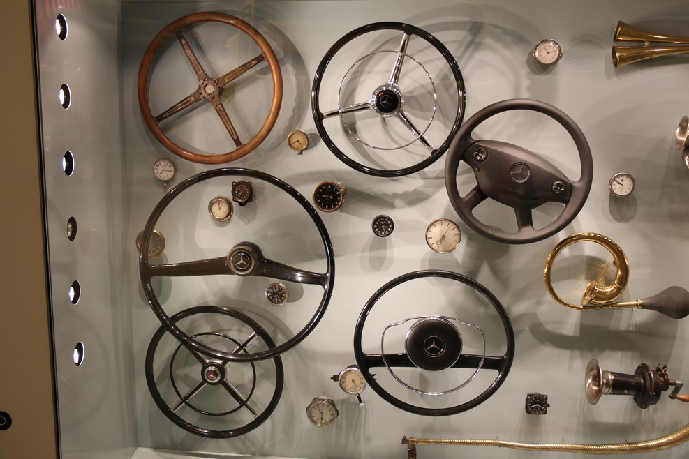 Спускаясь с верхних этажей к нижним, посетители видят как менялся со временем облик автомобилей, приобретая современный вид. Менялись не только машины, но и шильдики «Мерседес» на них: