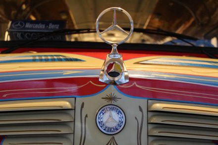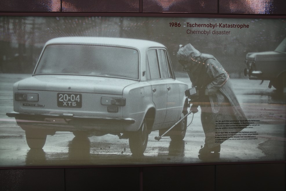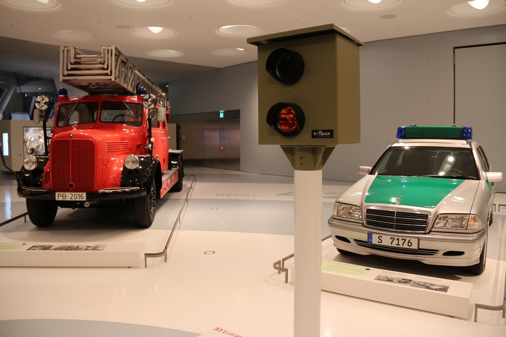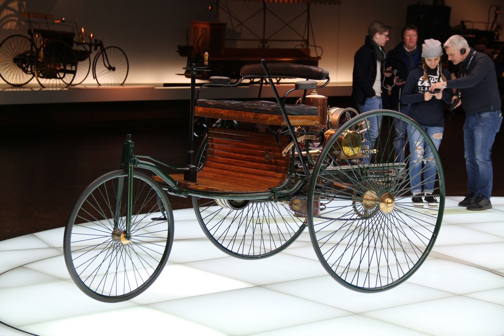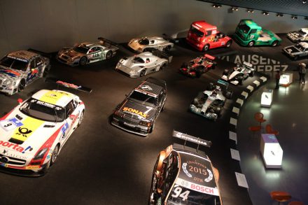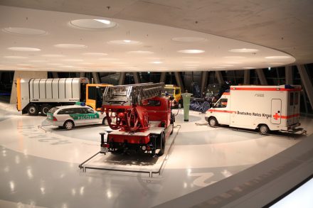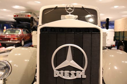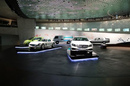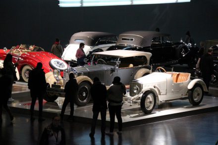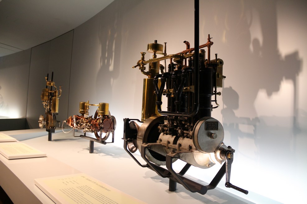 Спускаясь с верхних этажей к нижним, посетители видят как менялся со временем облик автомобилей, приобретая современный вид. Менялись не только машины, но и шильдики «Мерседес» на них: