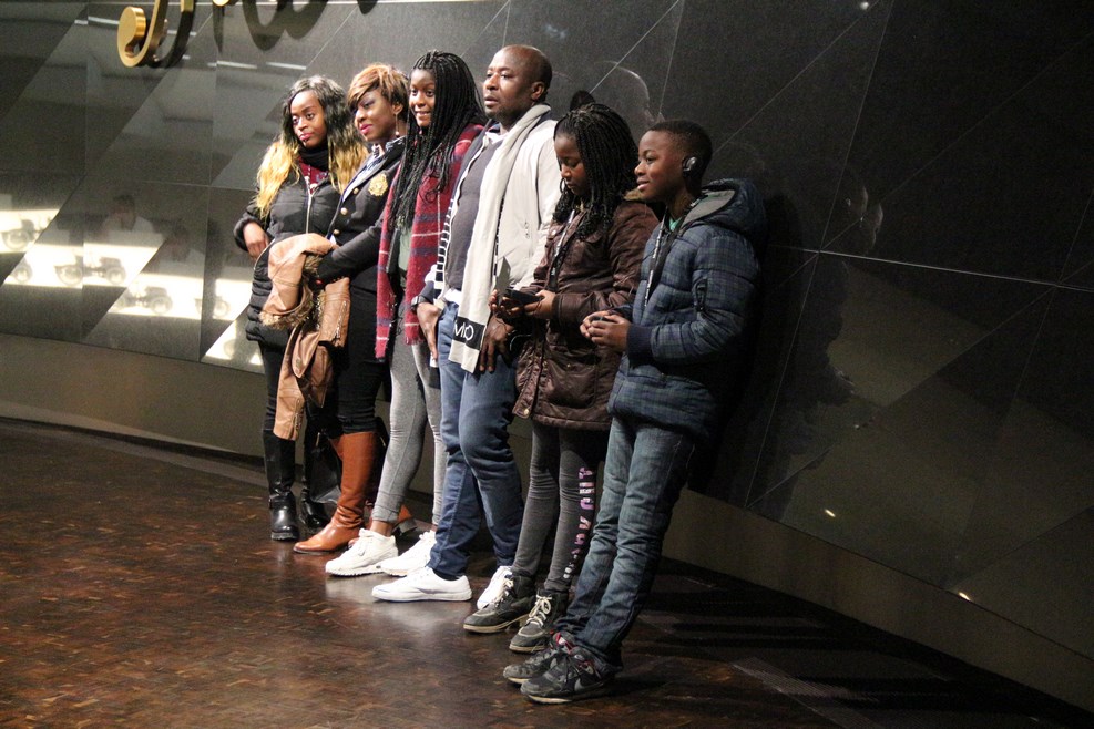 Всем дают наушники с аудиогидом на родном языке. Аудиогид соединяется по вайфаю с точкой, которая находится около автомобиля и посетители могут послушать историю того или иного автомобиля. Олька слушает информацию про вот этого красавца: