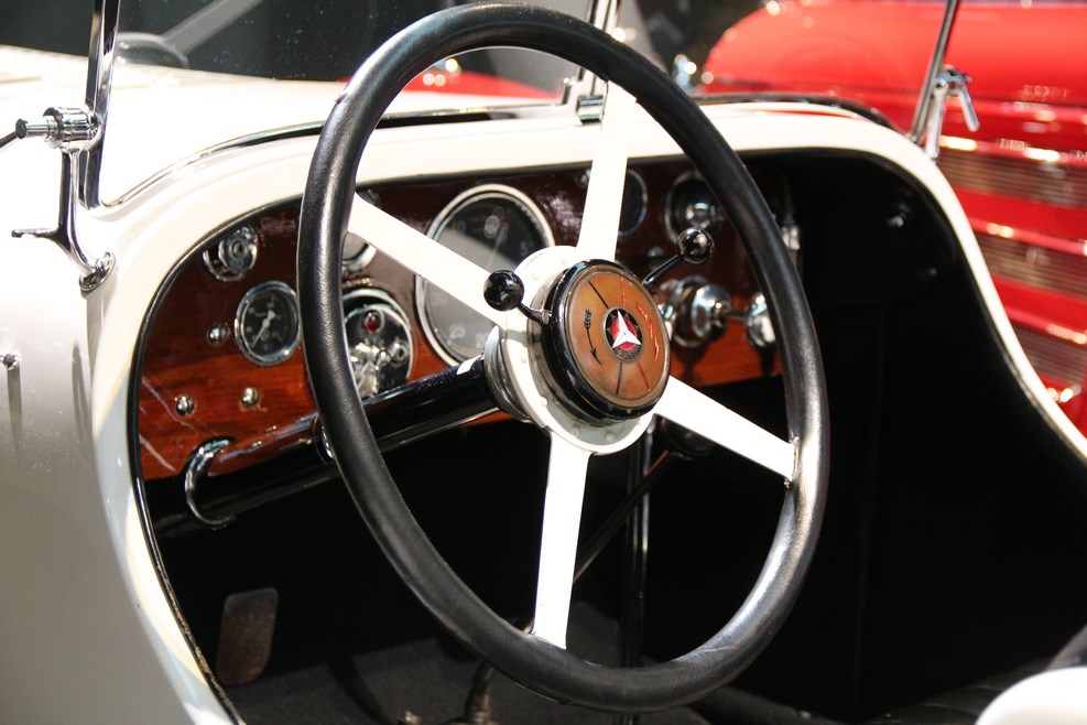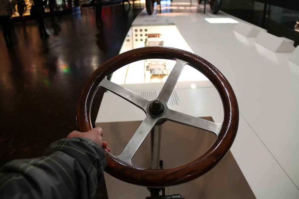 В музее можно не только смотреть, но и приобщиться к истории самому. Мне, например, было любопытно потрогать и покрутить руль, устанавливаемый на автомобили начала 20 века: