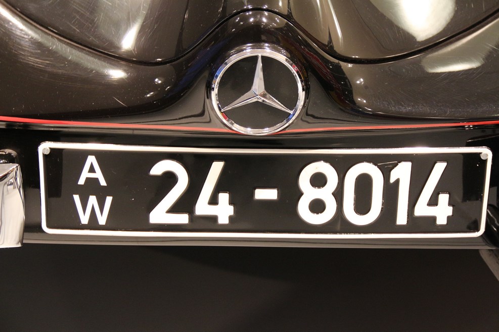 По автомобилям в музее можно изучать историю номерных знаков Германии. Знаки разных лет: