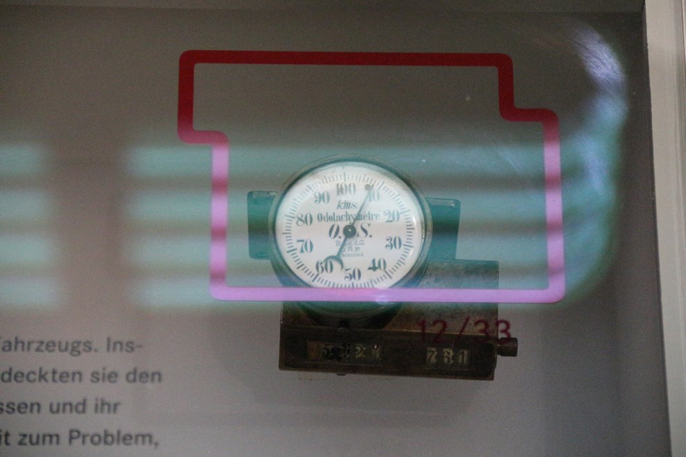 Вместе с основной экспозицией дополнительно рассказывается о всяких автомобильных примочках. На фото один из первых спидометров. Кстати, первое введенное скоростное ограничение для автомобилей составляло 15 километров в час (скорость лошади при движении «галопом»):