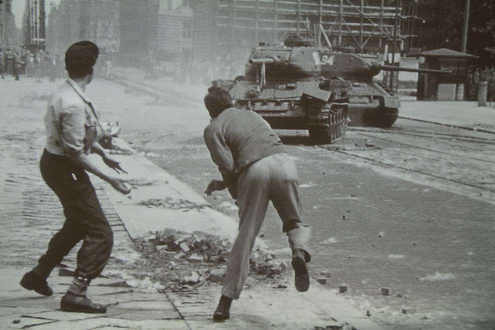 В них нет никакой информации о нападении Германии на СССР, но зато есть плакат о берлинском восстании 1953 года. Как бы получается, советские танки на улицах Берлина появляются сами собой: