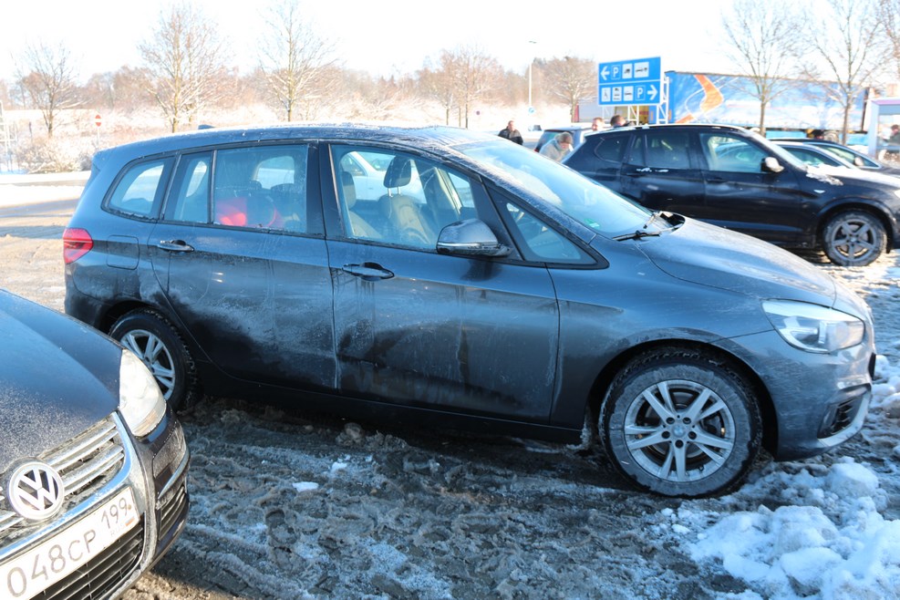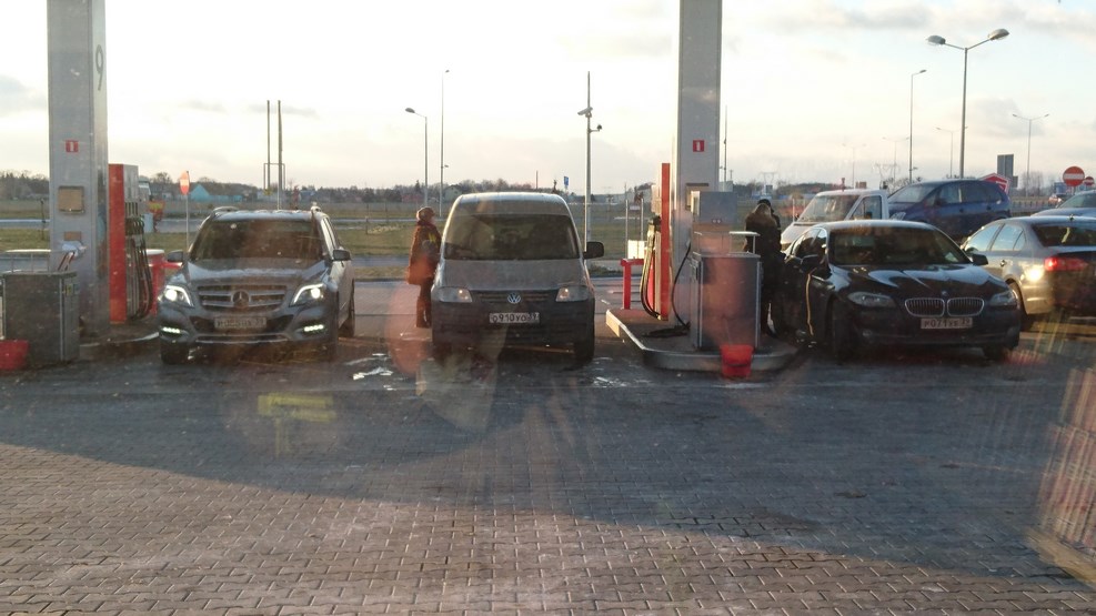 Машин с российскими номерами стало попадаться очень много. Вся заправка занята машинами с калининградскими номерами: