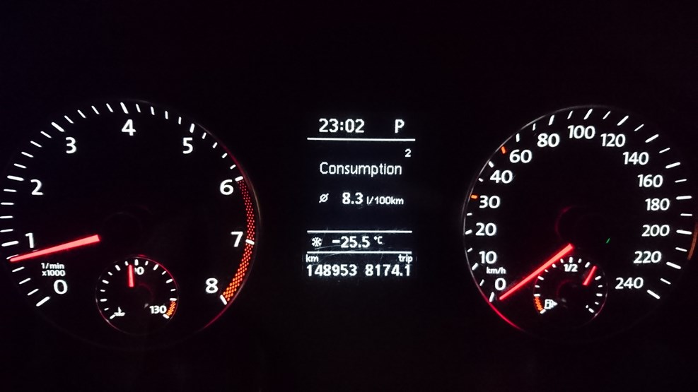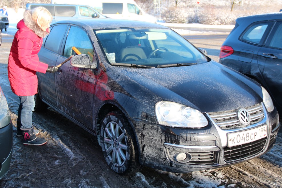 Машина с утра никак не хотела ехать. Из-за большой минусовой температуры еще до поездки у нас стала переходить в аварийный режим коробка DSG. То же самое произошло и в этот день. Мы конечно малость напугались, уж очень не хотелось ремонтировать машину за евро, но после того как заглушили машину и снова завели, она все-таки поехала. В дороге: