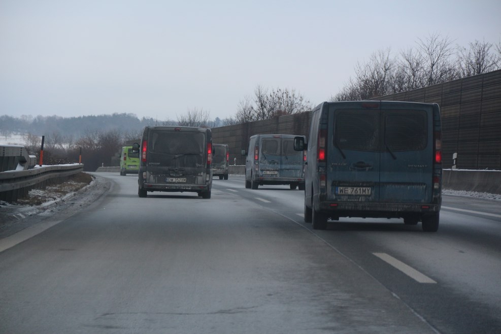 Догнали каких-то польских путешественников, которые ехали группой на минивэнах «Рено»: