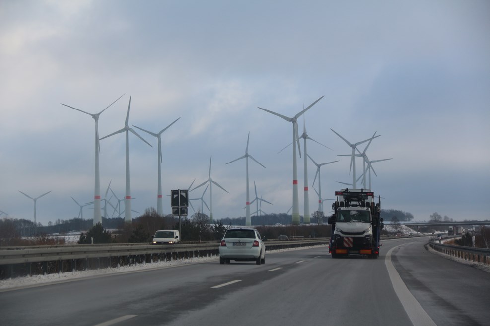 Едем по дороге с огромным количеством ветряков: