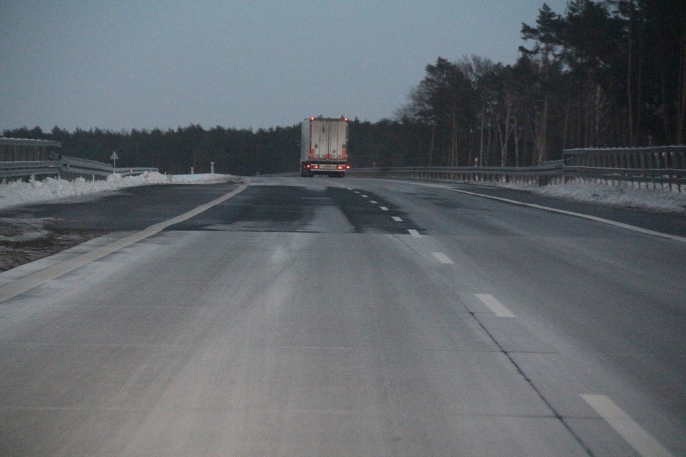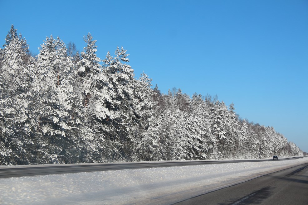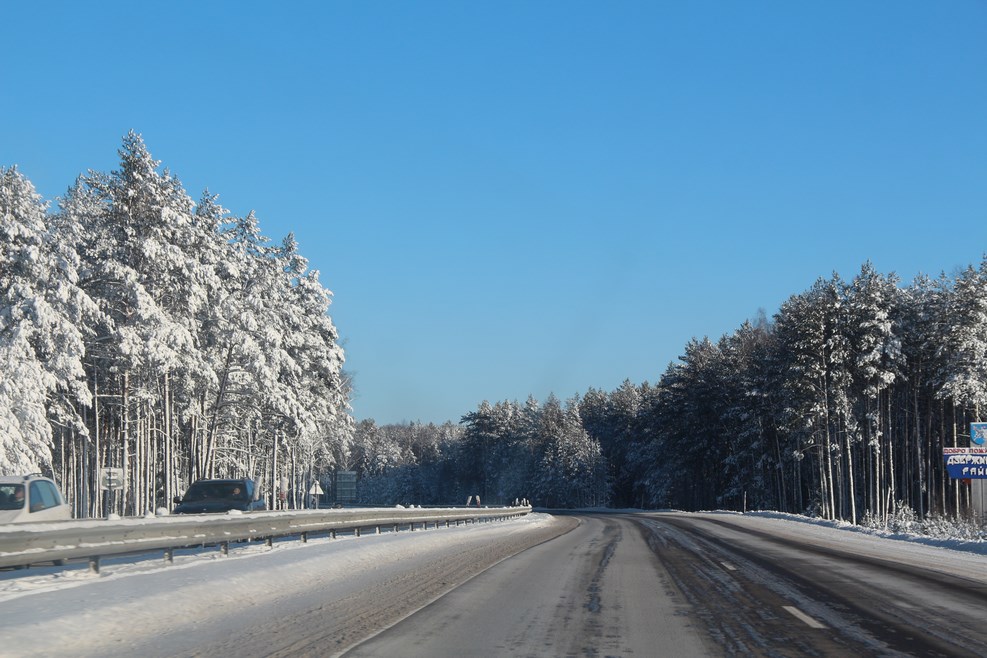 Недалеко от Бреста нас поймали за превышение гайцы. За плюс двадцать девять километров отдали штраф 700 рублей, расплачивались карточкой на терминале. Едем дальше, я отогреваю бутылку пива, которая промерзла до льда, потому что мы ее на ночь оставили в машине: