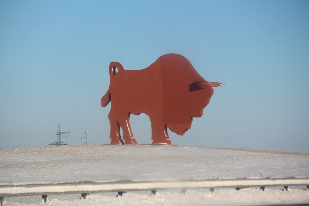 Проезжаем знаменитого зубра: