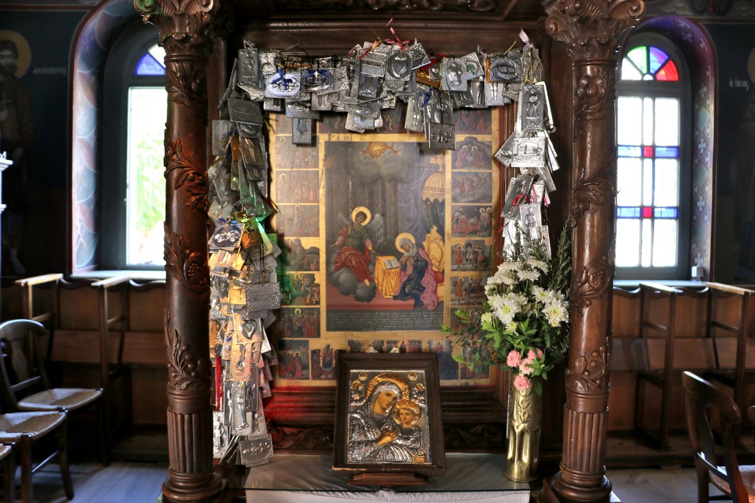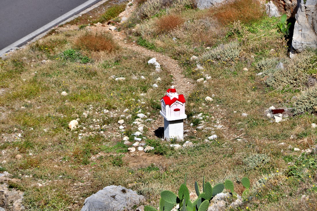 Дорога около крепости. Так же как и [=>> на Кипре <<=] тут стоят макеты церквушек. Обычно ими обозначают опасные места на дороге: