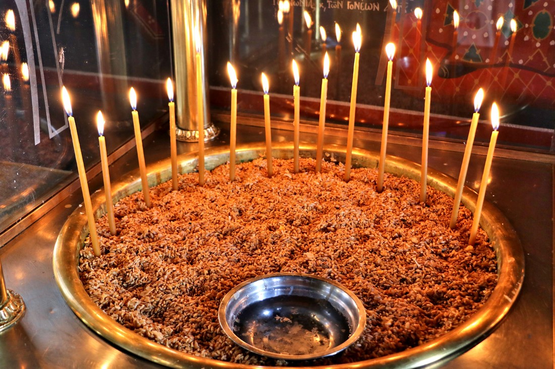 Для того чтобы свечки стояли, в чашу насыпали крупу: