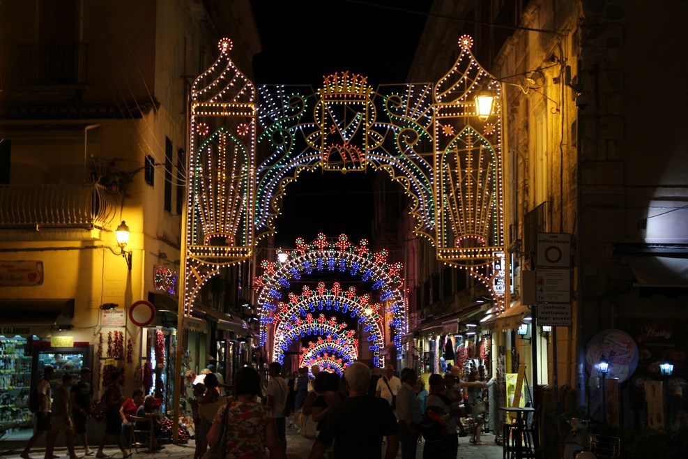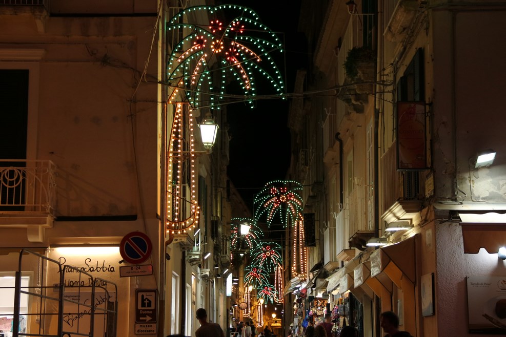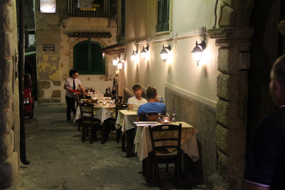 Самое главное отличие от обычных итальянских городов в том, что тут есть жизнь вечером. В обычных городах в это время все закрыто. Рестораны и кафешки располагаются прямо в узких улочках: