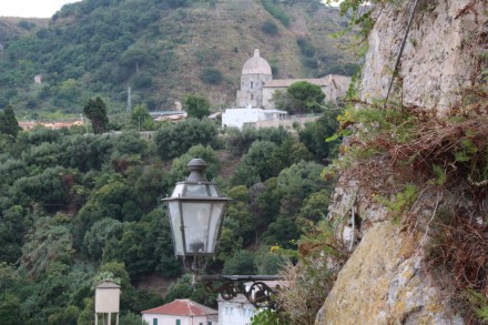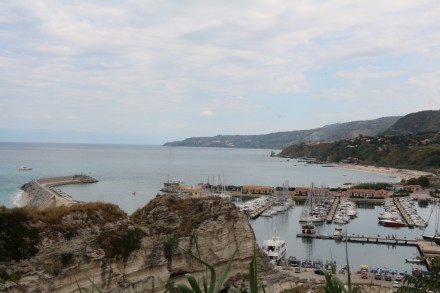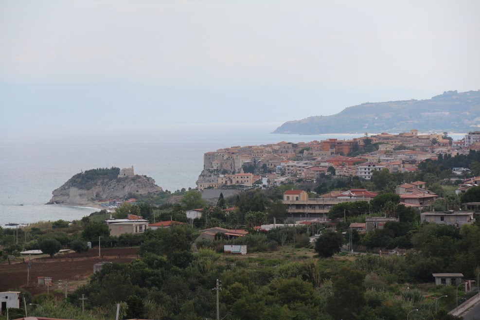 Номер нам достался с видом на море. Вид из окна на Тропеа утром: