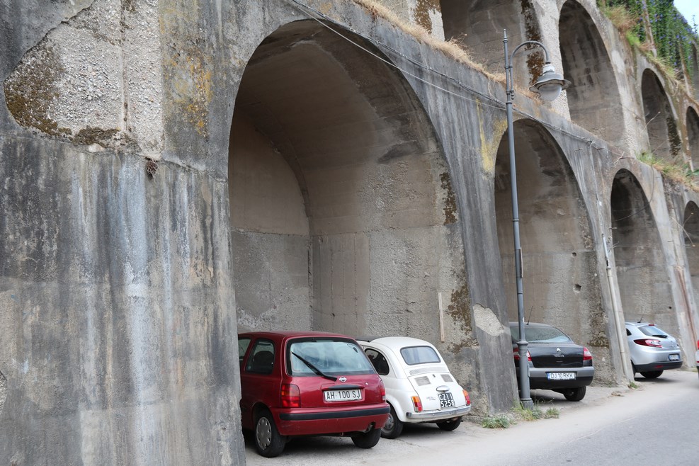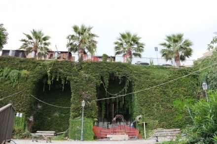 Город буквально нависает над пляжем. Чтобы скалы не обваливались, их держат внушительные бетонные конструкции: