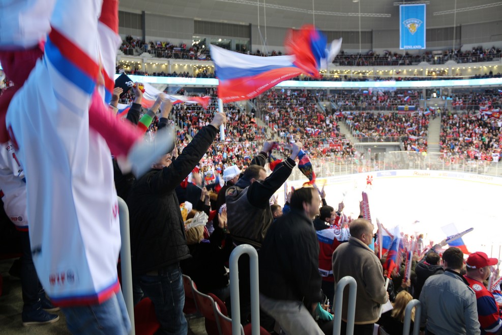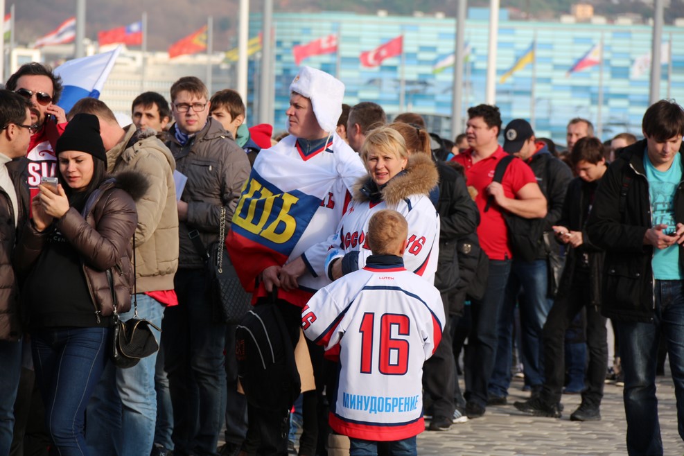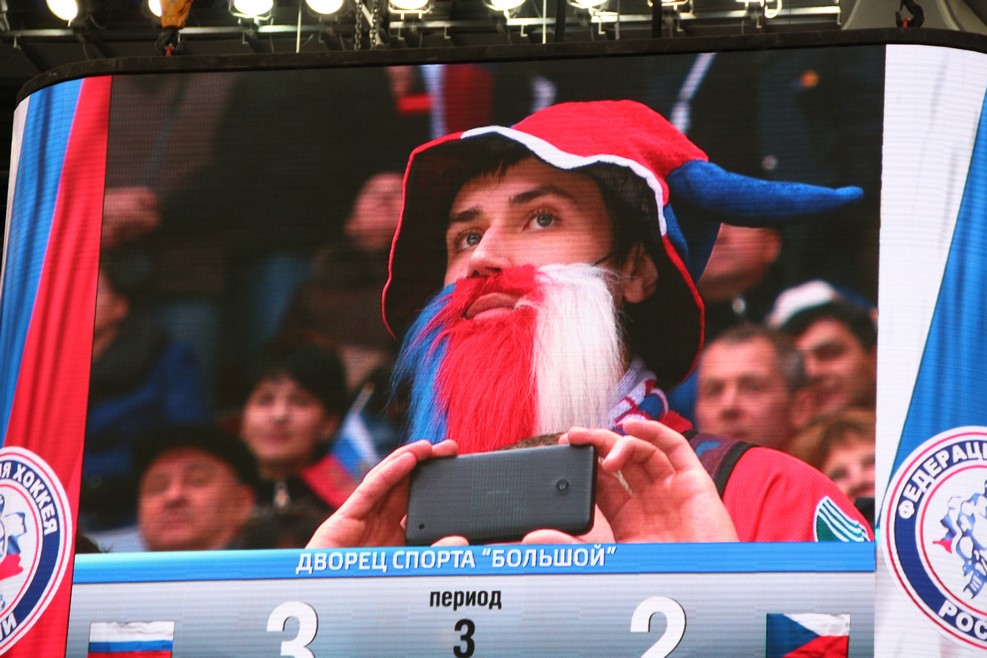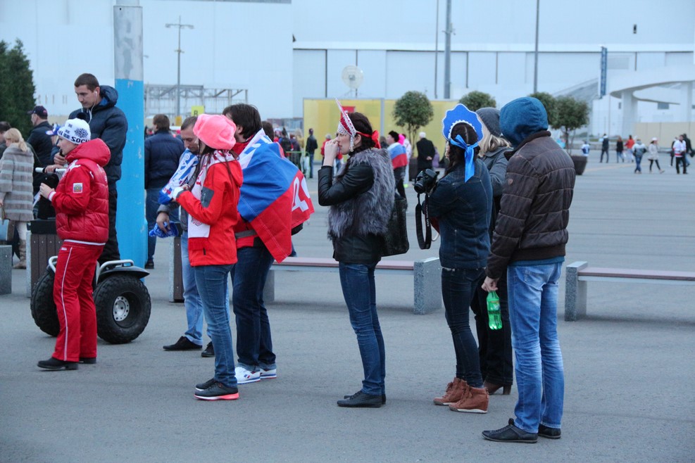 В этот день играла сборная России и сборная Чехии. Чешских болельщиков было совсем немного: