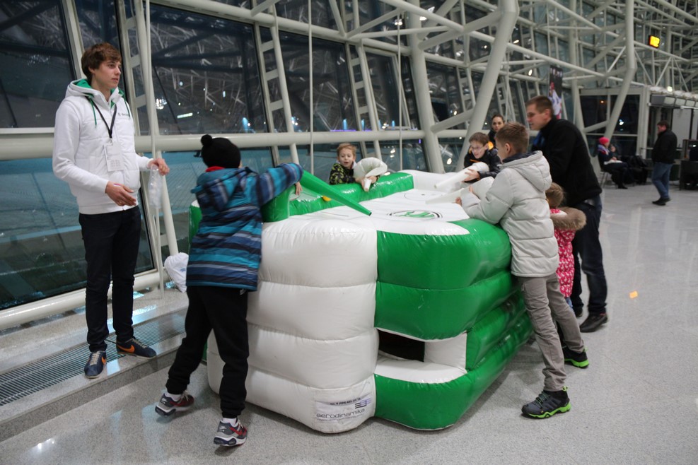 В перерывах между таймами зрителей развлекали совсем юные хоккеисты. Они пробивали друг другу буллиты. Гол!!!: