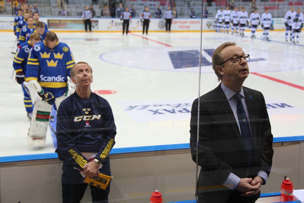 Традиционные гимны перед началом. Тренер шведов подпевал: