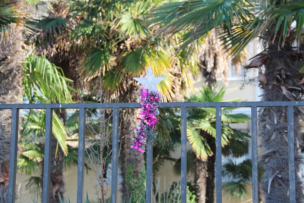 Одна из школ Адлера находится прямо на побережье. Элемент украшения школы к Новому Году:
