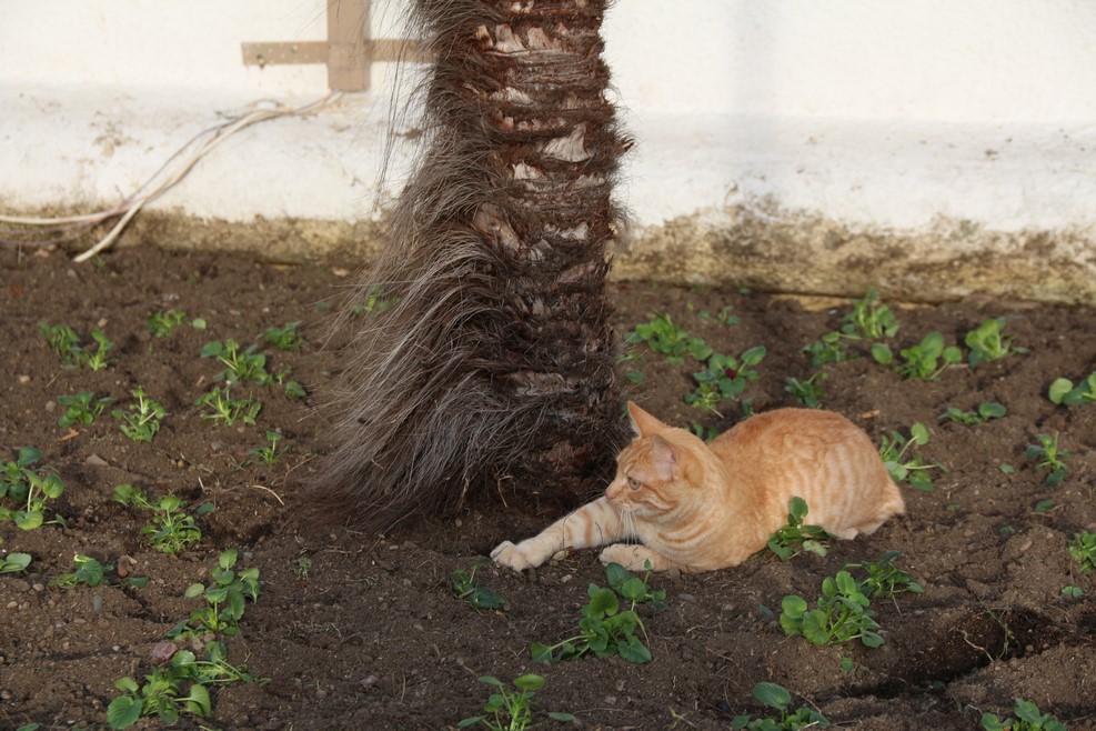 И продолжил играть рядышком с пальмой: