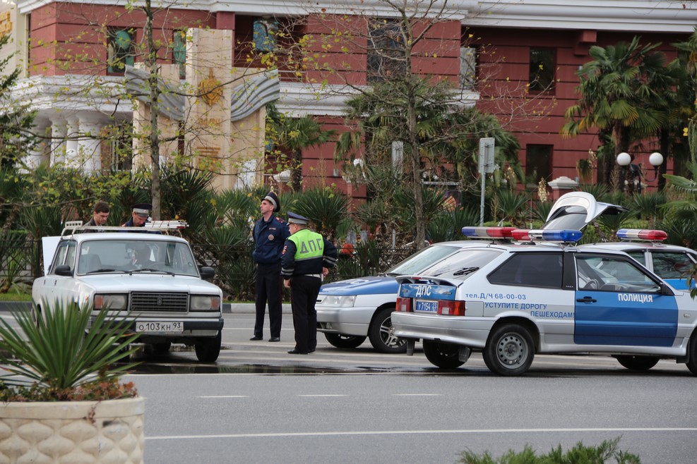 На последней фотографии гаишники пасутся на своем любимом месте. Центр Сочи, вот они справа около большой надписи Police (рядом здание местного УВД):