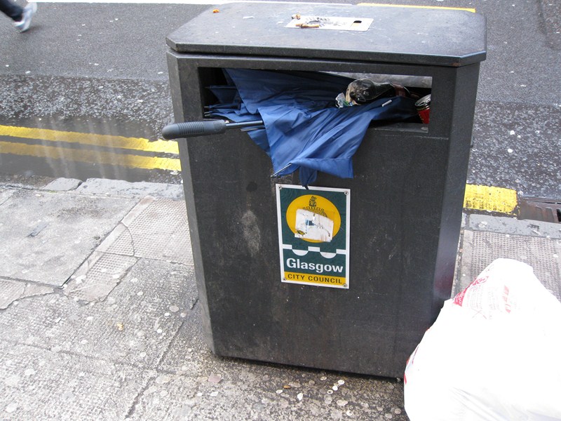 Мусорки стандартны для Великобритании. После дождя с порывами ветра в них очень часто валяются зонтики: