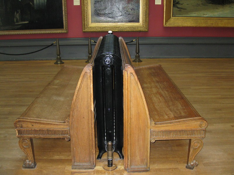 Во время осмотра можно посидеть на лавочках, которые обогреваются огромными радиаторами: