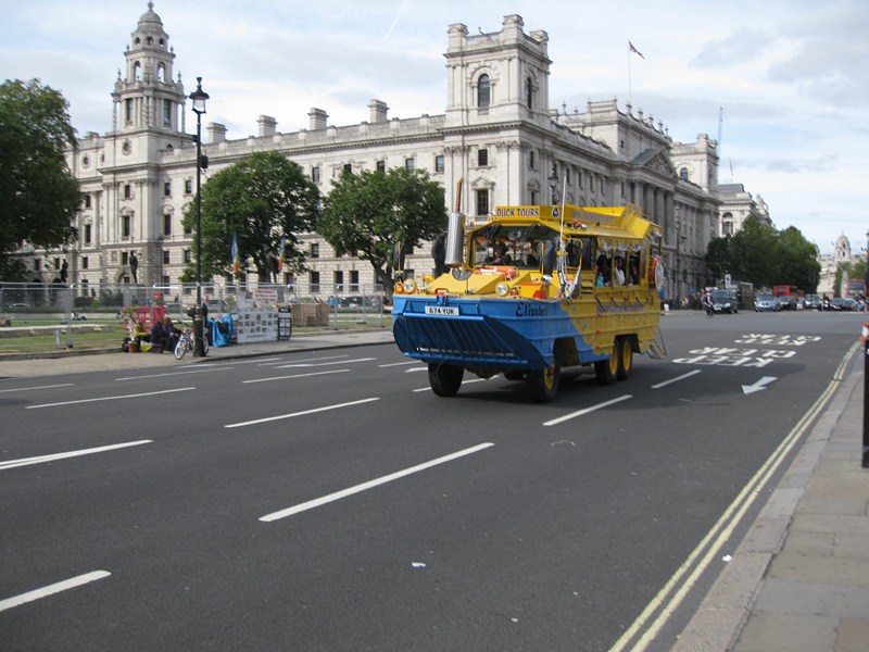 В Лондоне часто можно увидеть вот такие амфибии, с помощью которых путешествуют и по воде и по суше: