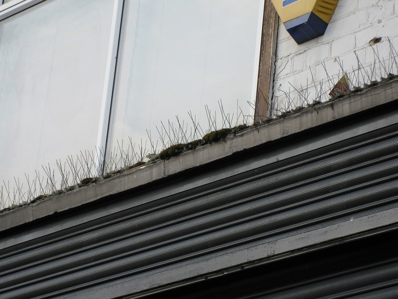На всех поверхностях в Великобритании мы видели вот такие ежи, предположительно, что бы не садились птицы: