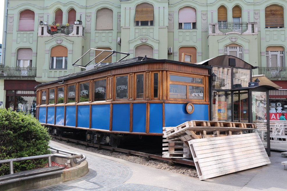 Как и в Сегеде тут есть старый трамвай, правда его зачем-то завалили деревянными настилами: