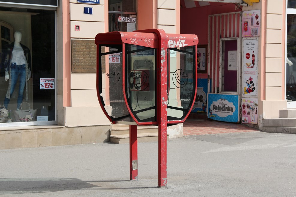 Тут еще сохранились проводные уличные таксофоны: