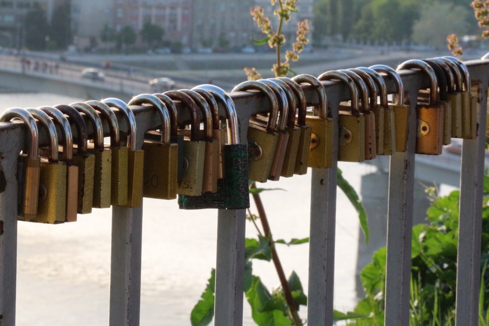 На мосту через речку, в отличие от других мест, все замочки выглядят как под копирку: