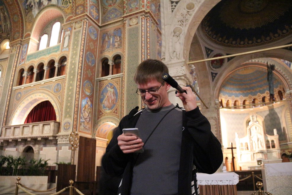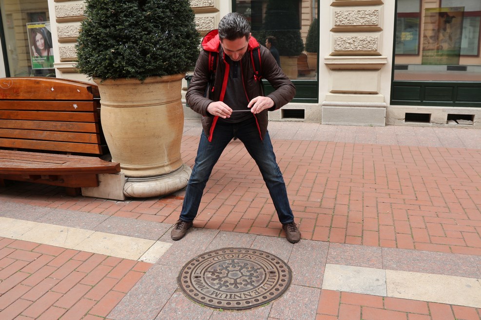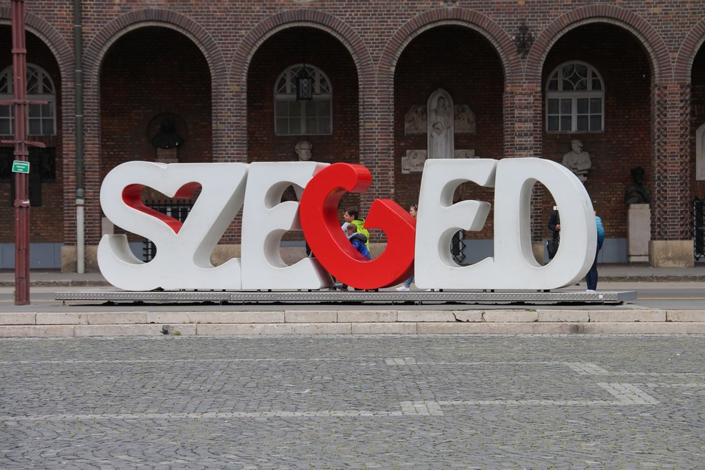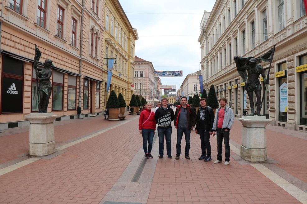 Приехали в город Сегед. Он находится около границы трех государств – Венгрии, Румынии и Сербии. Саня на фоне сегедской телевышки: