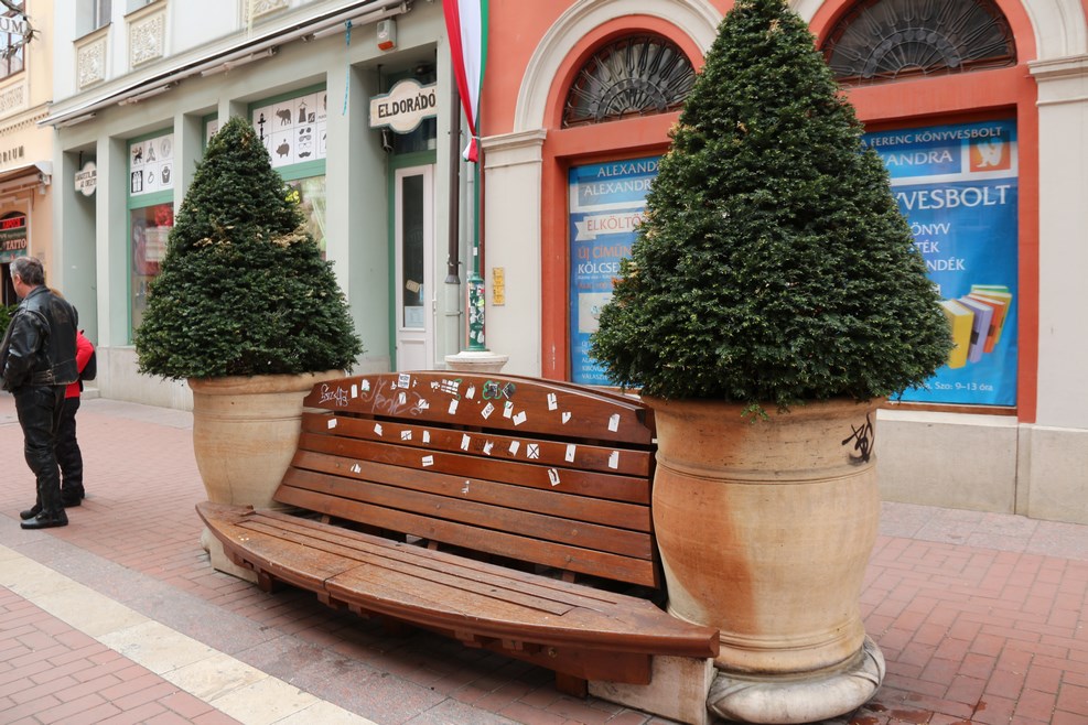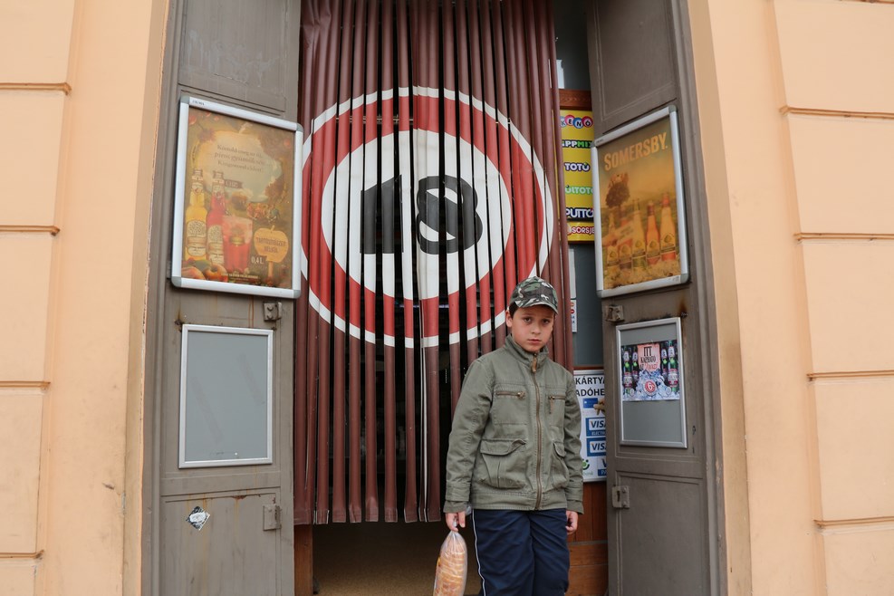 В Венгрии алкоголь продают в отдельных магазинах, вход в такой магазин. Малой ждет кого-то из взрослых у входа: