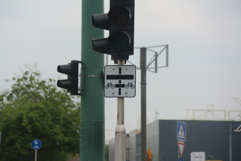 Знак, предупреждающий о том, что автомобильную дорогу пересекает велодорожка: