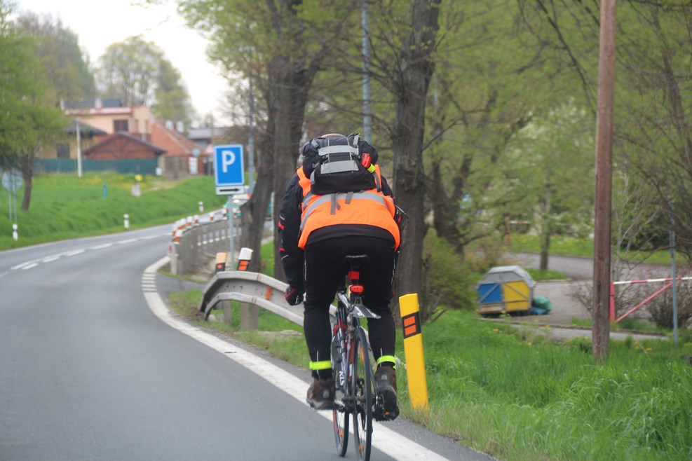 Велосипедист тоже ярко выделен, что бы он был виден водителям и днем и ночью: