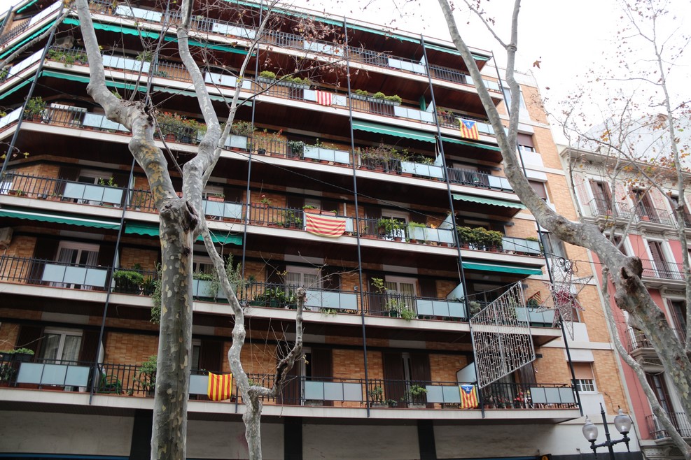 Барселона – столица Каталонии, а в Каталонии сейчас как никогда сильны сепаратистские настроения. На домах вывешено запредельное количество каталонских флагов:
