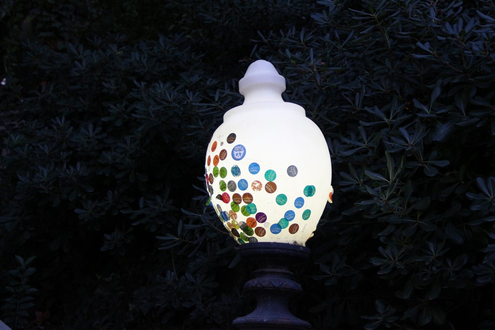 Почти все фонари, до которых может дотянуться рука человека, обклеены наклейками: