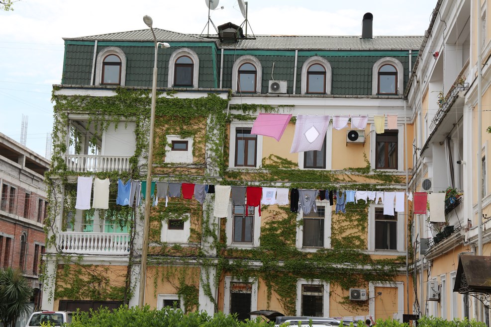 [gmap]!1m18!1m12!1m3!1d95439.06100869635!2d41.65249585!3d41.623957100000005!2m3!1f0!2f0!3f0!3m2!1i1024!2i768!4f13.1!3m3!1m2!1s0x406786304ea2d221%3A0x7a3053a9e12ea967!2z0JHQsNGC0YPQvNC4LCDQk9GA0YPQt9C40Y8!5e0!3m2!1sru!2sru!4v1433345170339[/gmap]Для начала давайте немного прогуляемся по городу. Белье тут сушат на длинных веревках, перекинутых через всю улицу: