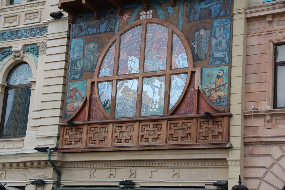 Панно с надписью под ним «Книги». Кстати город очень русскоговорящий: