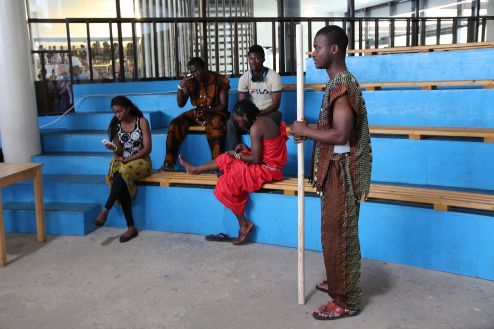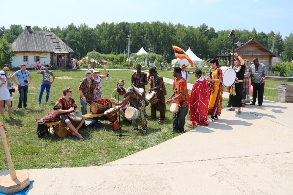 Рядом сидят артисты, которые в этот день будут участвовать в фестивале африканской культуры: