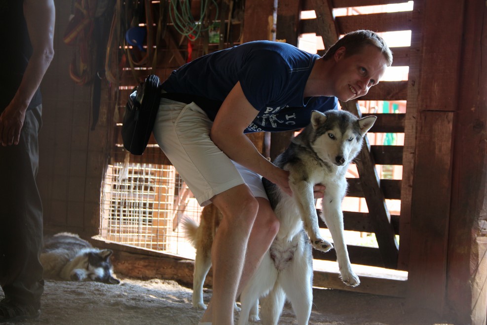 Наибольшее количество посетителей, без сомнения, находятся у вольера с сибирскими хасками: