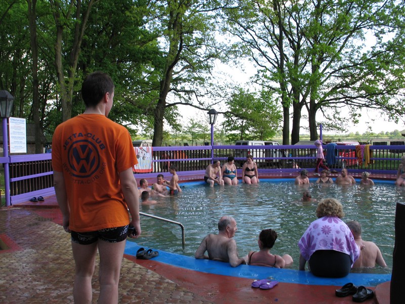 Около Мукачево недалеко есть открытые бассейны с природной горячей водой. Купание в данном водоеме придает сил и повышает настроение, очень рекомендую тем, кто будет рядом. На улице примерно +16, но джеттаклуб открыл купальный сезон: