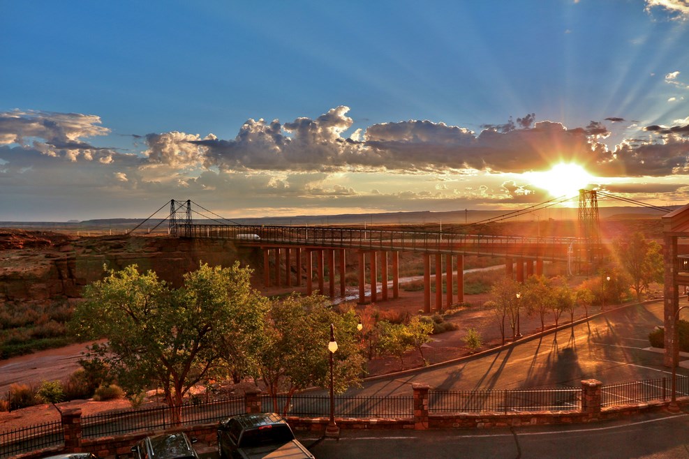 Утро нас встретило в местечке Камерон, которое находится в индейской резервации племени Навахо. Вид с балкона гостиницы: