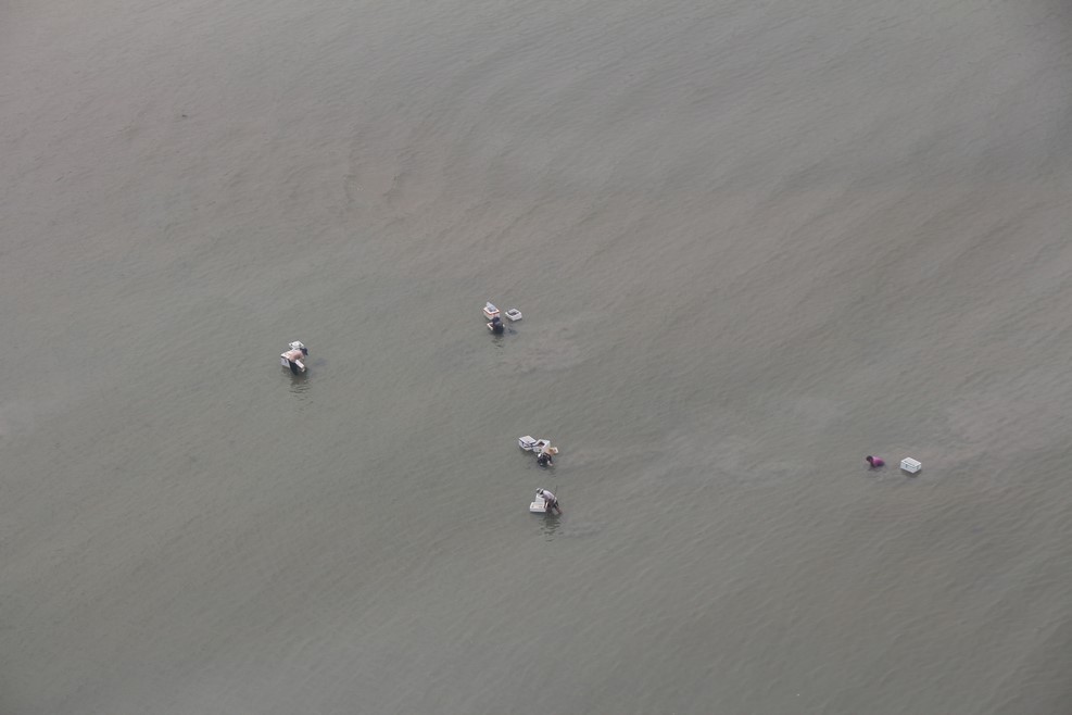 Где-то внизу ловят рыбу рыбаки, таская за собой пенопластовые корзины: