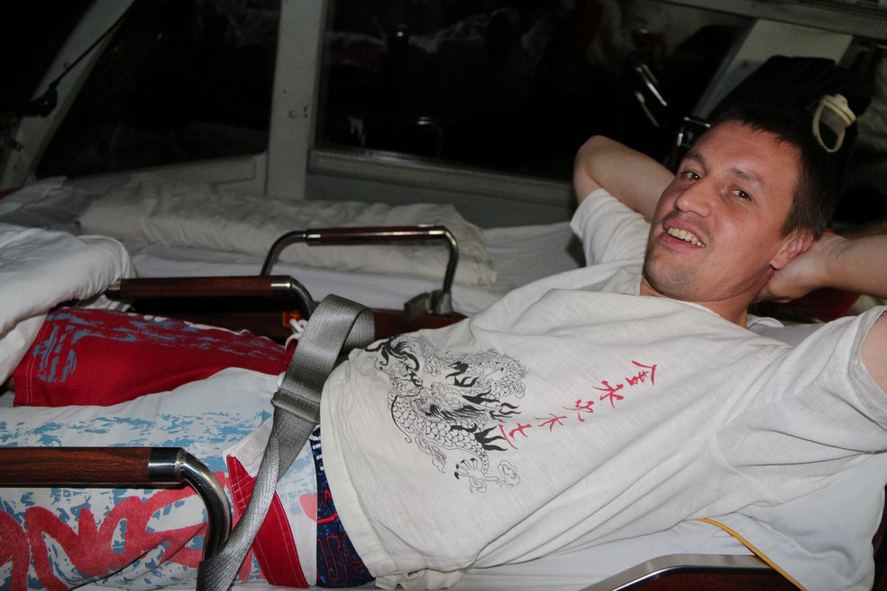 В город мы добирались на ночном автобусе со спальными местами. Ощущения от поездки как будто тебя живьем везут на катафалке. В салоне при посадке: