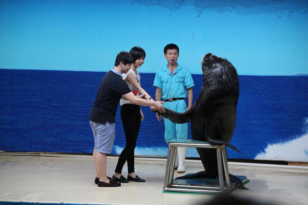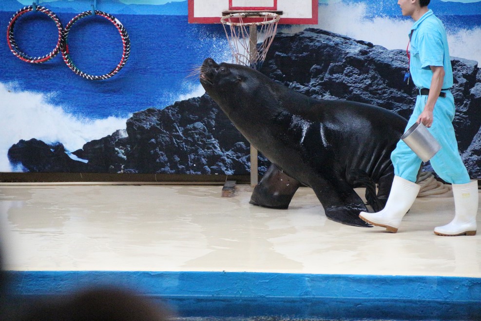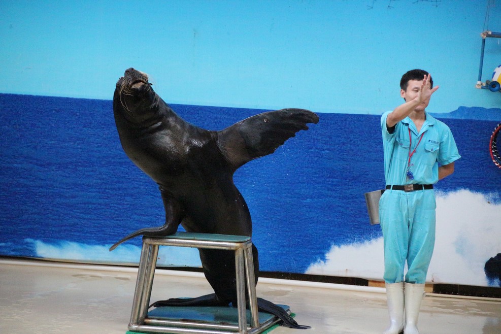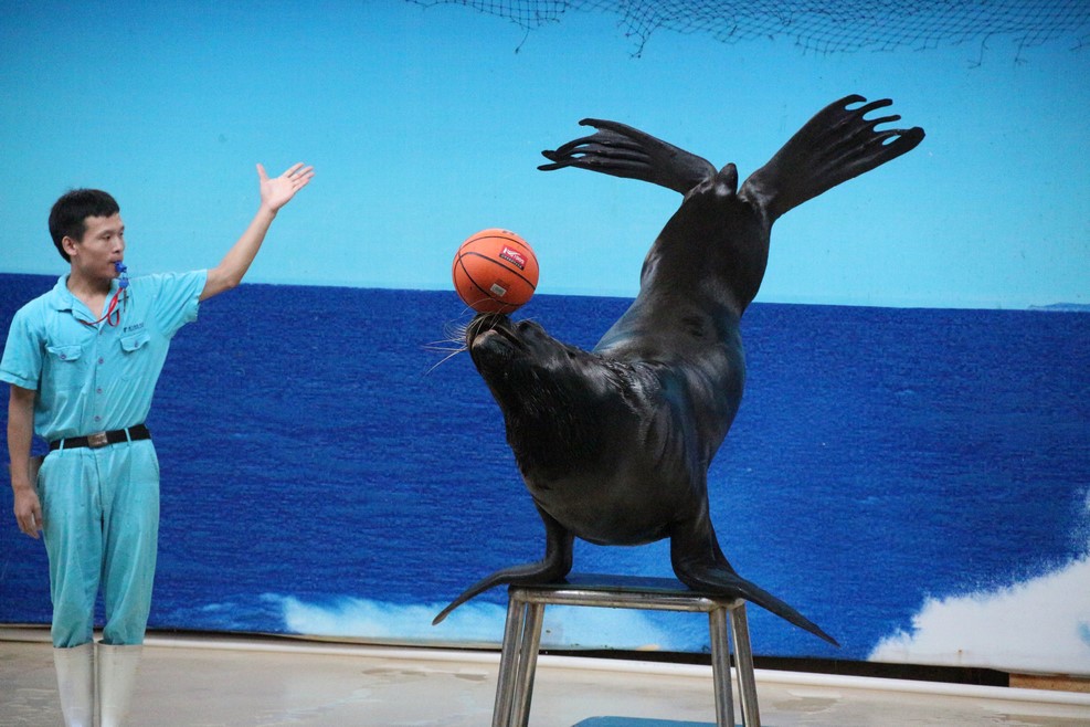 В конце экспозиции показывают небольше представление с тюленем: