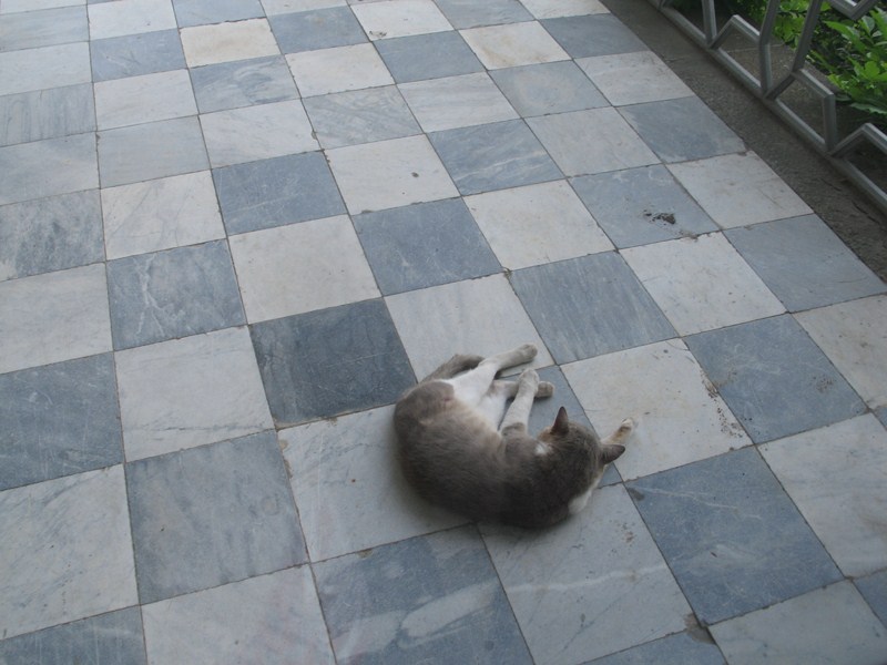Кот спит на плитке 19-го века: