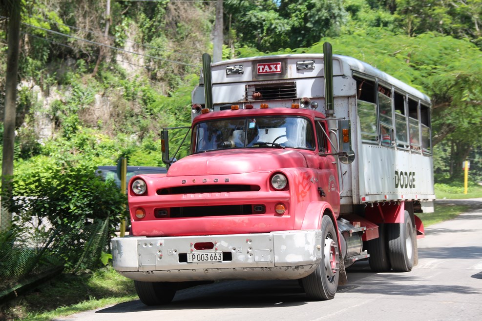 С автобусами напряженка везде, поэтому кубинцы приспосабливают под общественный транспорт все, что может двигаться. Старые машинки забивают до предела: