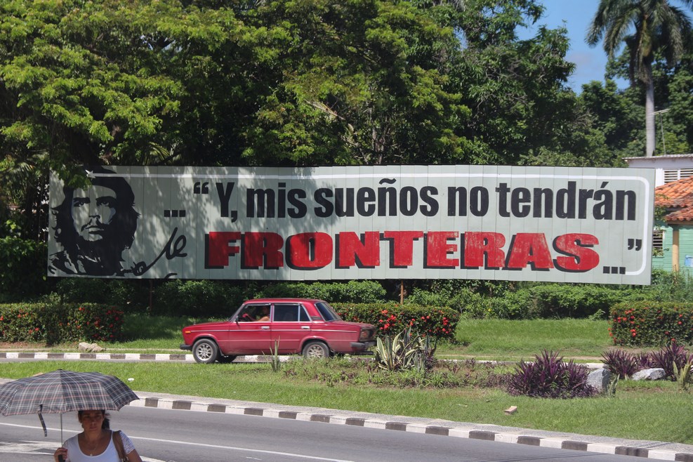 Вдоль дороги очень часто можно увидеть знаменитые высказывания Че или портреты каких-нибудь героев кубинской революции: