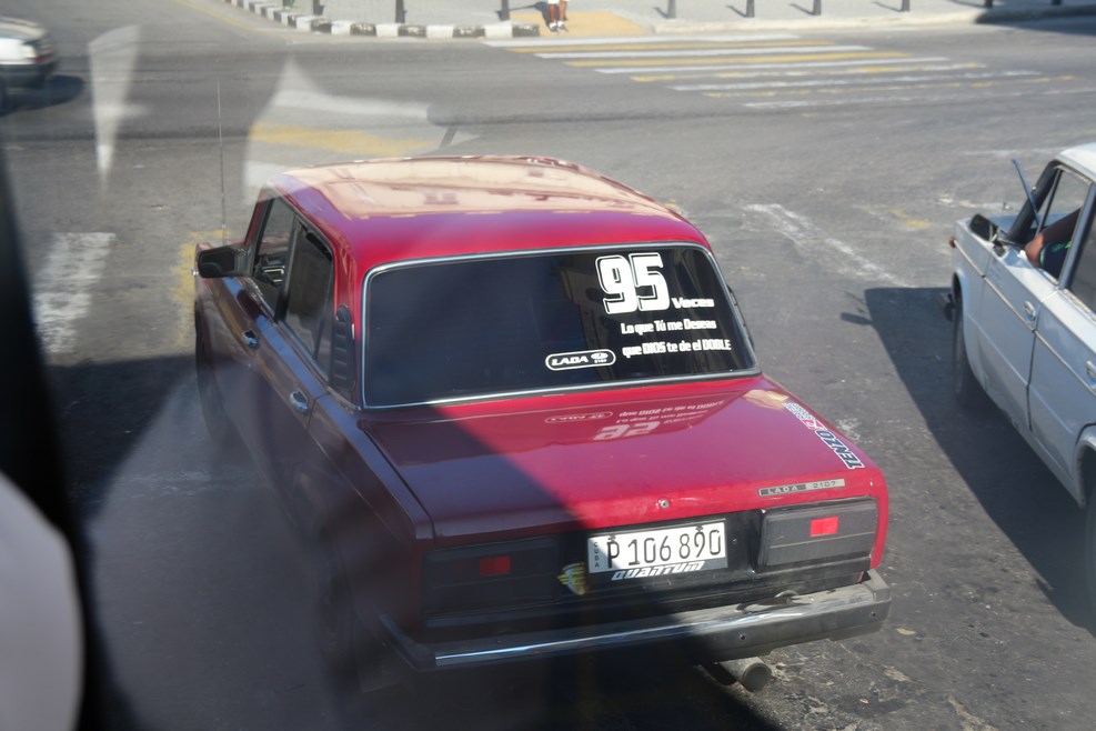 Кубинский тюнинг жестокий и беспощадный, кроме тонировки по кругу, любят водители прилепить еще какую-нибудь наклейку побольше: